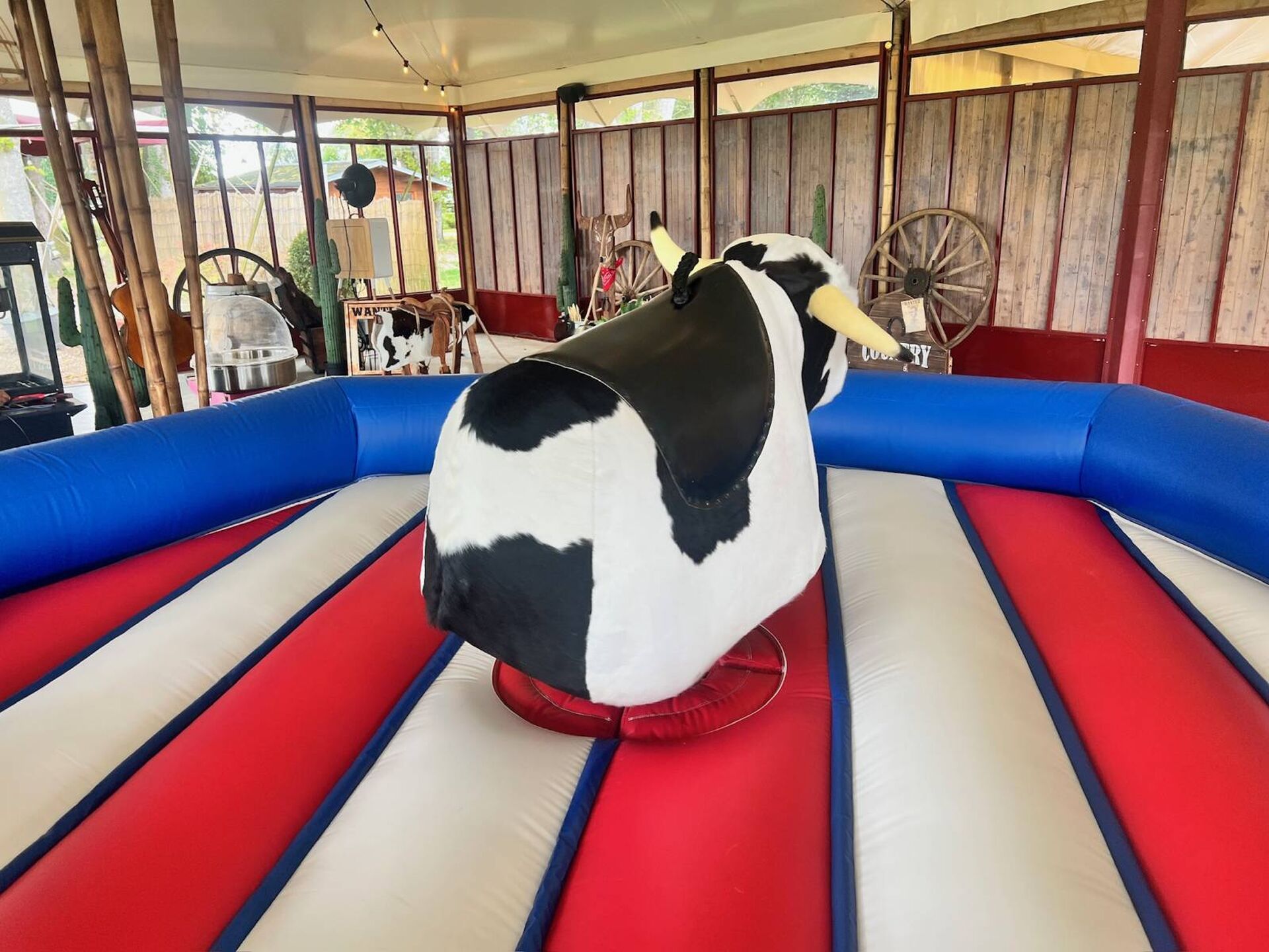 Notre taureau mécanique est une animation incontournable pour votre soirée d'entreprise ou pour l'organisation de votre cocktail dinatoire. Cette animation rodéo mécanique restera un souvenir pour vos collaborateurs et donnera une véritable ambiance jusqu'au bout de la nuit. Le taureau mécanique s’installe facilement en intérieur comme en extérieur.